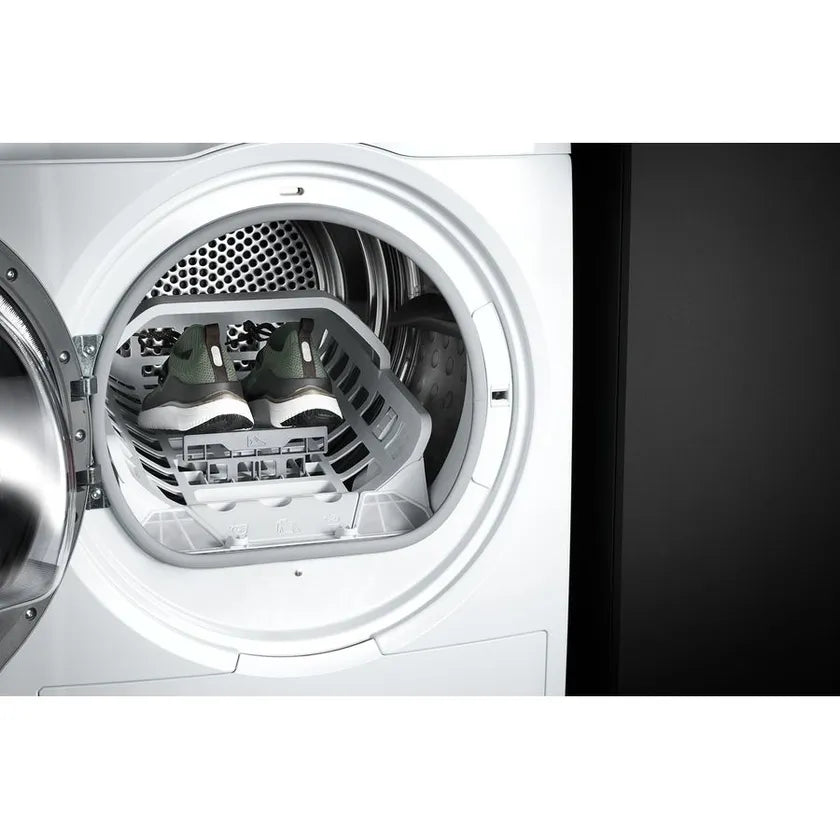 - Comhtháite le córas AbsoluteCare, tá rialú beacht ag an Triomadóir Caidéal Teasa 3D-Scan AEG 8kg 9000 Series ar ghluaiseacht agus ar leibhéil teochta a druma triomú. Bunaithe ar na baill éadaigh atá i láthair taobh istigh, féadann sé do chuid éadaí a thriomú go críochnúil agus a n-uigeacht agus a gcuma á gcoimeád fós